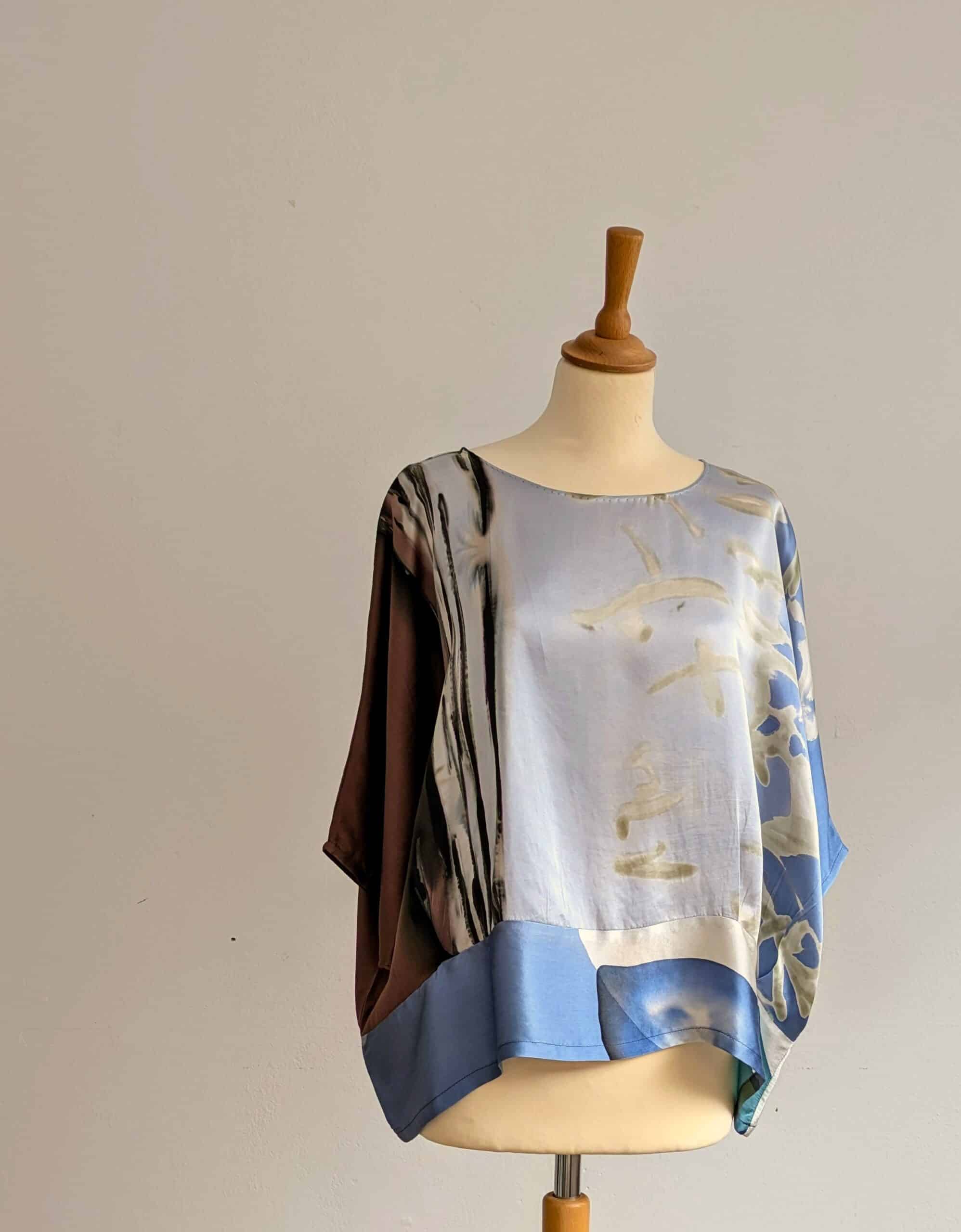Seda natural (Satin 16,5) pintada a mano, exclusivamente, con pincel.