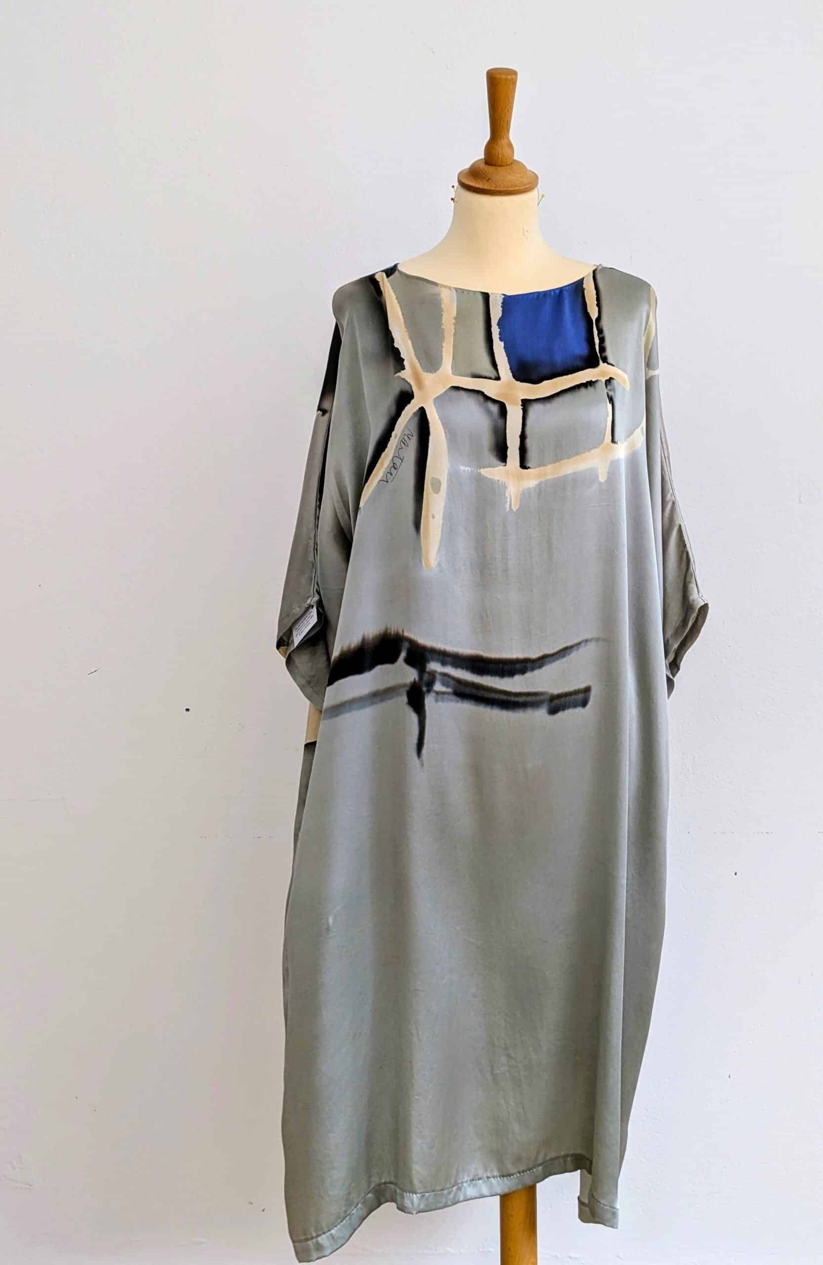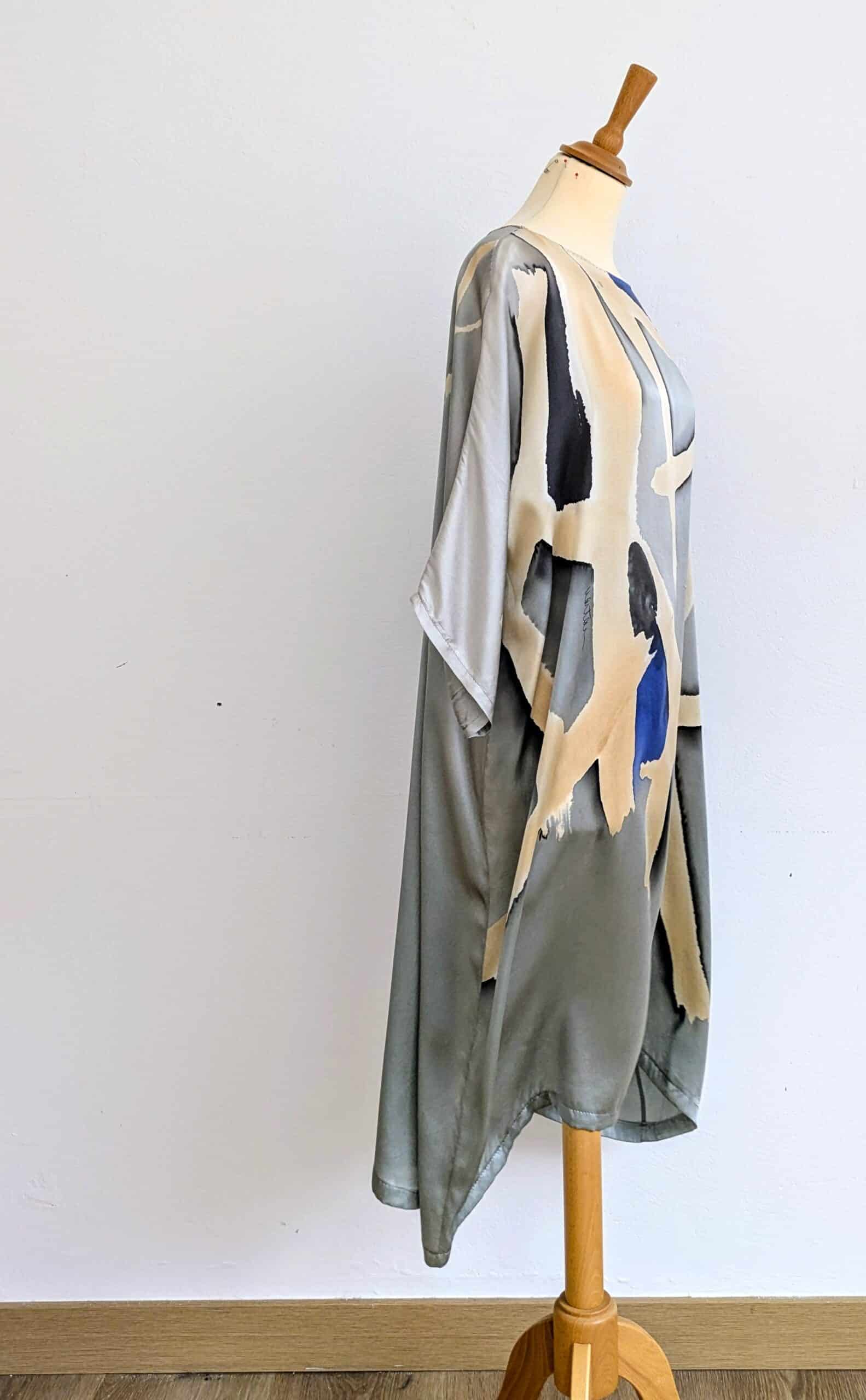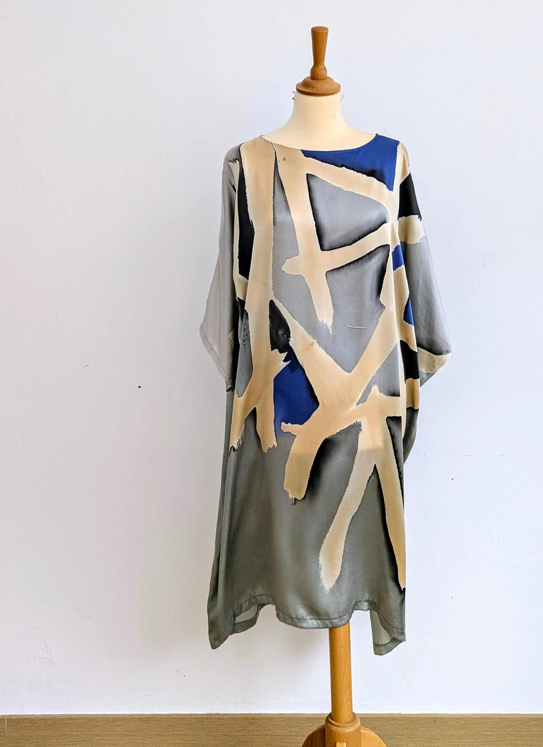 Seda natural (Satin 16,5) pintada a mano, exclusivamente, con pincel.