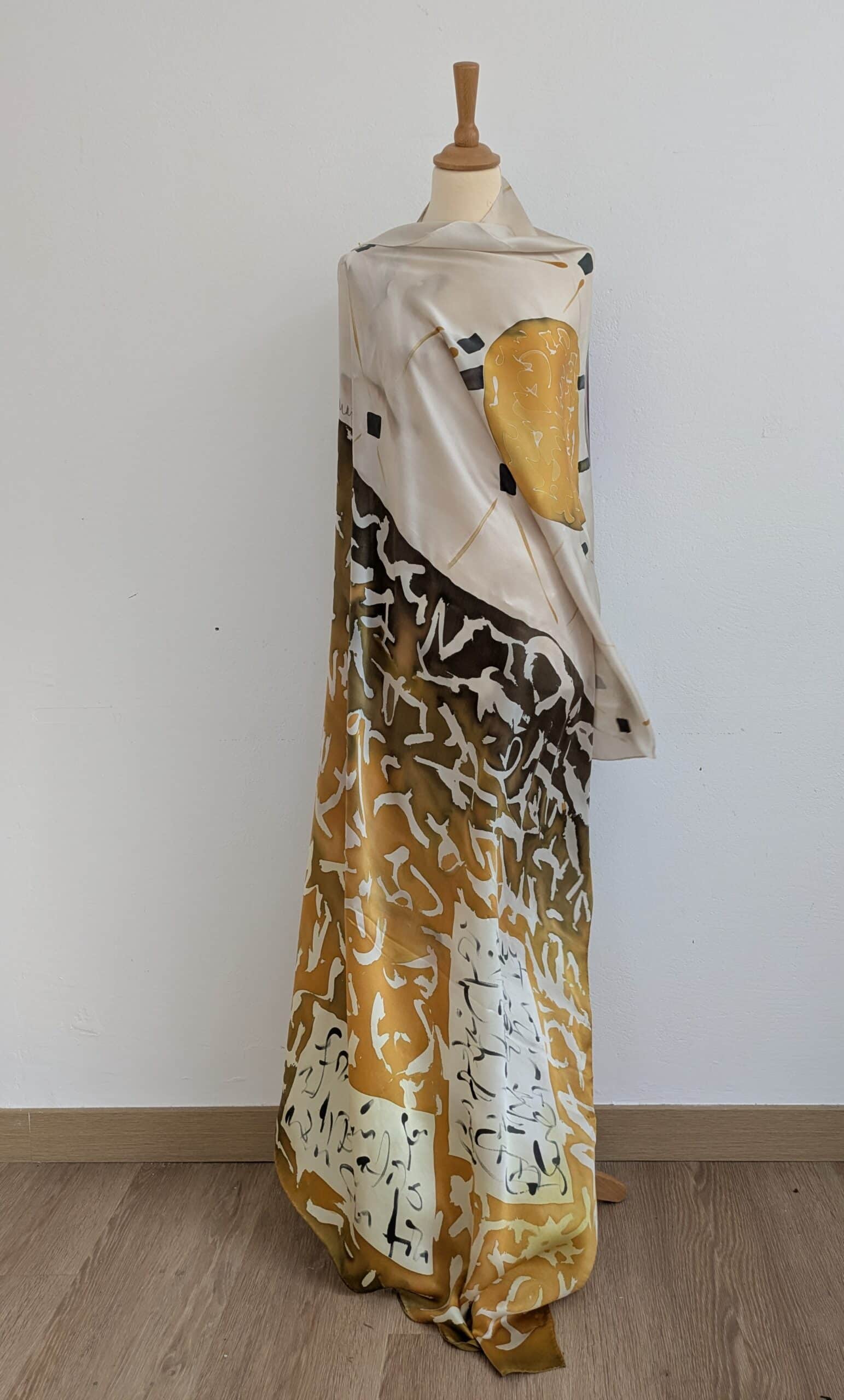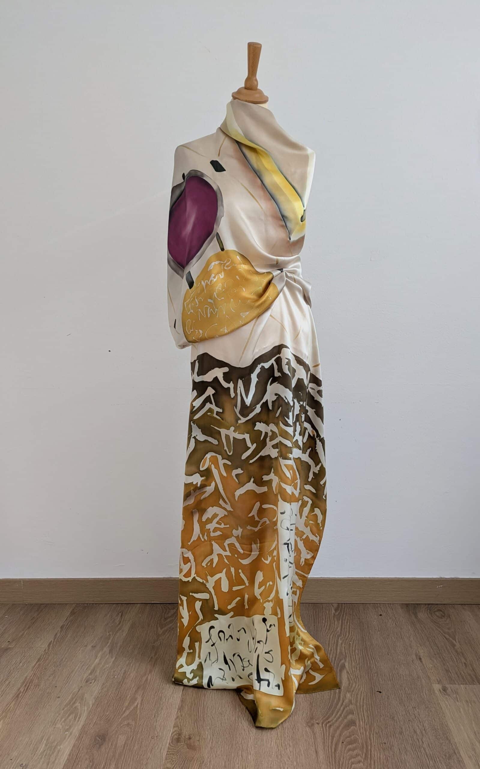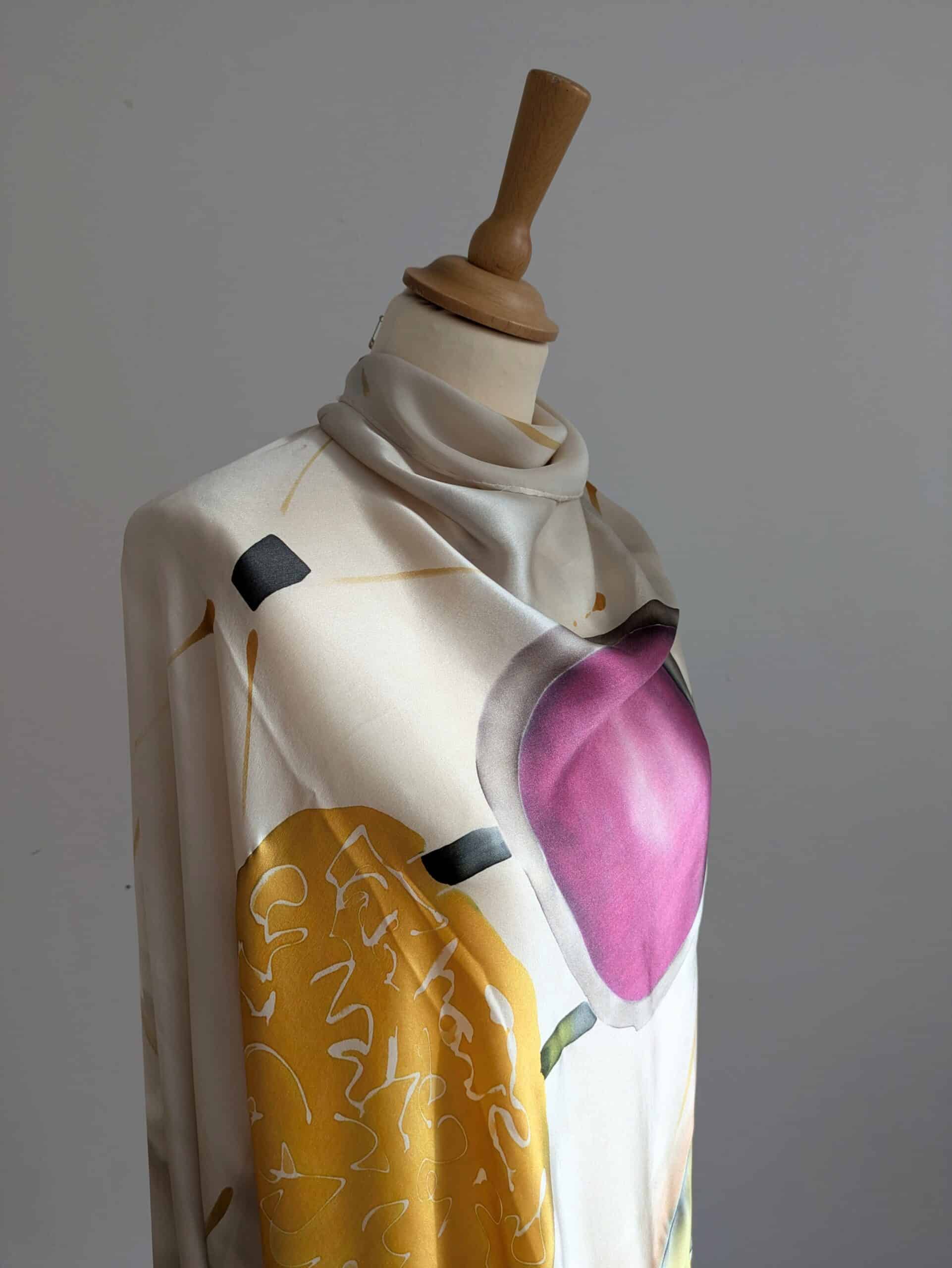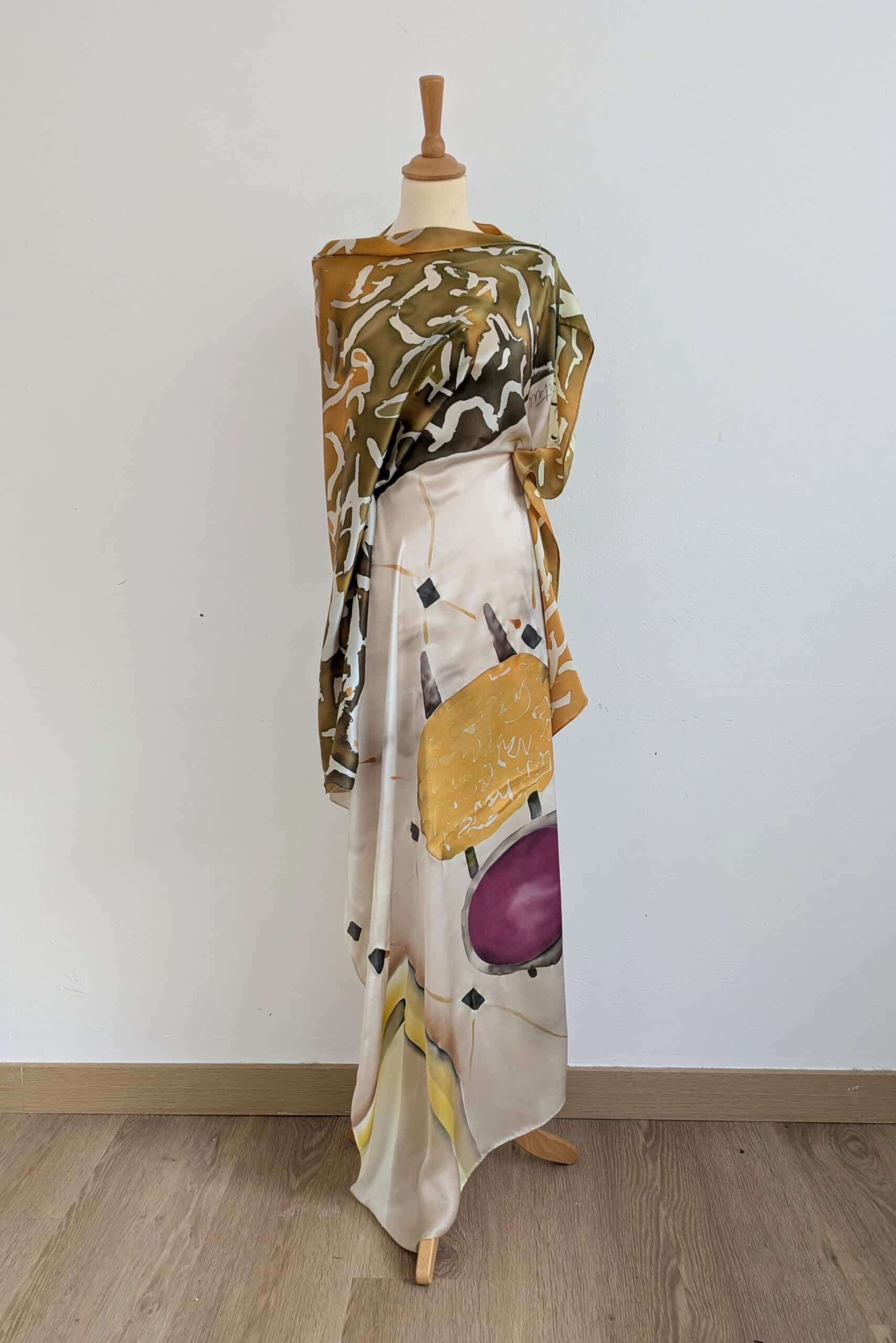 Seda natural (Satin 12,5) pintada a mano, exclusivamente, con pincel.